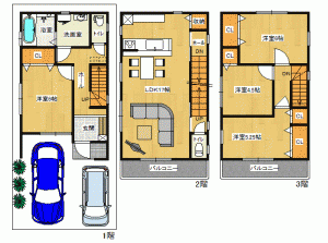 ●延床面積/約98㎡(1階29.16㎡ 2階34.42㎡3階34.42㎡)
