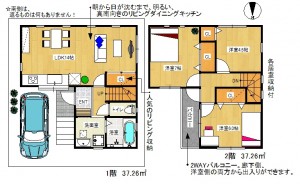 八尾市新築一戸建て 間取りの説明!!近鉄大阪線「高安」駅 徒歩9分 近鉄大阪線「河内山本」駅 徒歩13分 (東山本新町8丁目)