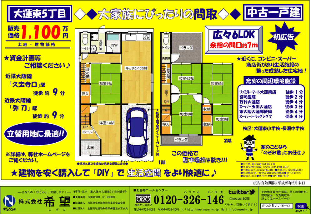 近鉄大阪線「久宝寺口」駅 より 徒歩9分 /自転車で 約3分
