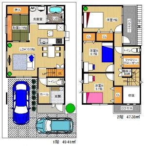 96.79㎡ 1階49.41㎡ 2階47.38㎡(2号地)