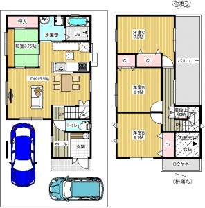 92.74㎡ 1階49.41㎡ 2階43.33㎡(2号地)